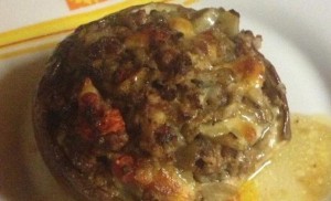 Cool down the sauce, and rinse the eggplant. Fill the eggplants with the mixture by adding to inside a little primosale cheese diced. Dust the surface of the eggplant with a touch of fresh turmeric and place in preheated oven and let it cook for about 30 minutes at 200 degrees. Check occasionally for doneness of eggplant.