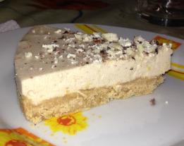 For the preparation of the base, crush the biscuits with a mixer. Stir in the melted butter and brown sugar and mix well. Lined a backing sheet hinge with a paper for oven and place the mixture of biscuits in the bottom, leveling them well with the help of a spatula. Let rest in the fridge. At this point you begin to prepare the cream. Whip the cream first. Put to soften the gelatin in cold water. Then in a large bowl place the cream cheese and sugar with the help of an electric mixer started to mix well. Mix with the cream, vanilla, cinnamon and grated orange zest and continue to mix well. Squeeze the gelatine and melt them for a few minutes over low heat in a saucepan with the orange juice. Pour the gelatin into the bowl of cream and beat to mix all ingredients well. Pour the cream into the pan over the biscuit base and leave in the fridge for at least 3-4 hours. After the rest period, deformed the cheesecake in a serving dish and garnish the surface with slices of white and dark chocolate.