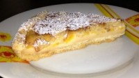 To prepare the dough, mix together flour, sugar, butter into small pieces, egg and a pinch of salt, until you get a homogeneous mixture, cover with plastic wrap and let it in the fridge for at least half an hour. Meanwhile, cut the peaches and keep aside. In a bowl, mix together butter, sugar and eggs until you get a creamy mixture and then add the ground almonds. In another bowl, dilute the cornstarch with syrup of peaches and add to the mixture. Mix well and add the baking powder. Roll the dough and place it on a baking pan lined with parchment paper. Prick the bottom with a fork and with the scraps of dough, prepare some “tapes” for decoration. Distributed over the dough peaches, so as to cover the entire surface and then pour the cream. Level the surface and decore with tapes of dough, arranged diagonally to form a grid. Bake the tart for 30-40 min at 180 °. Serve sprinkled the surface with icing sugar