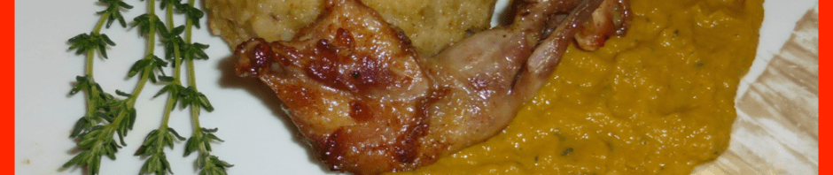 In a pan pour oil and a knob of butter (11), let brown the thighs and quail breasts adding some leaves of sage and thyme; let brown the skin well (12-13). Temporarily remove the legs and breasts from the pan and add the boiled vegetables cut into pieces; add the quail and a little of broth, let cook until you obtain a thick bottom (14). Put aside the legs and breasts and using an immersion blender puree the vegetables getting a smooth sauce (15). Bake the molds in preheated oven at 200 ° C for about 8 minutes. Put into a plate unplugging the Timballo mold and placing the legs and breasts by side; garnish with the vegetable sauce (16).